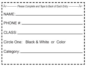1. Only black and white prints and color prints will be accepted for exhibition. Photographic grade paper must be used for photographs submitted to be eligible for judging. Pictures printed on any other paper are subject to not being displayed or judged.