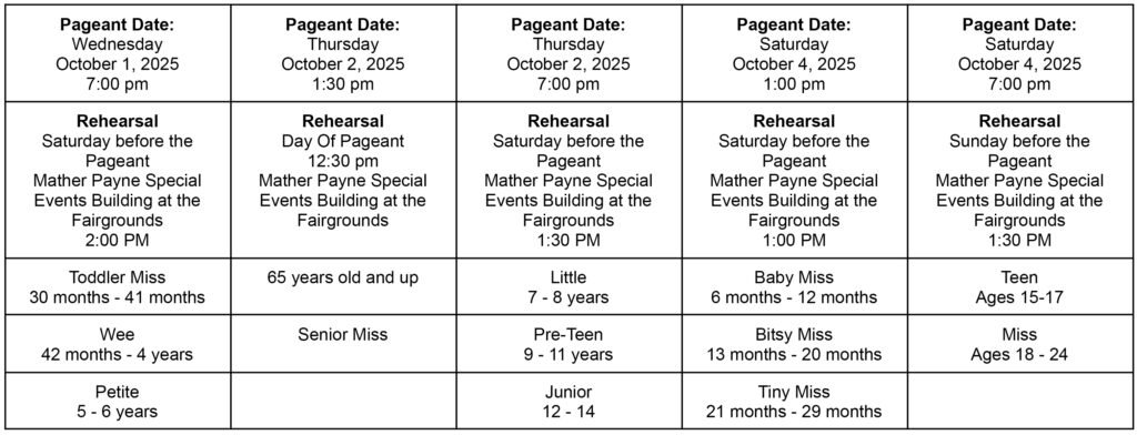 The Coosa Valley Fair Pageants will assign categories according to the size of the competition.